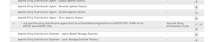 Apache Sling Distribution Agent - Sync Agents Factory- to open for edit, select the existing configuration (pencil icon)