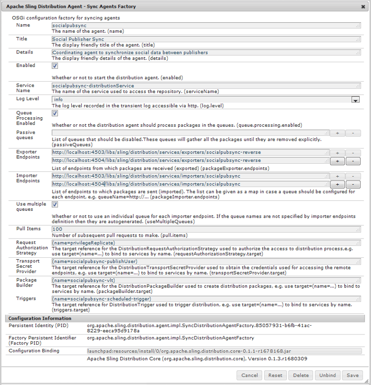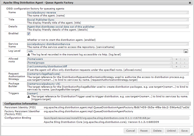Apache Sling Distribution Agent - Sync Agents Factory-
