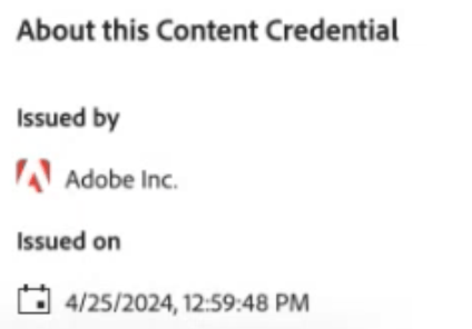 - About this Content Credentials: Name of the issuer along with the date and time of issuance.