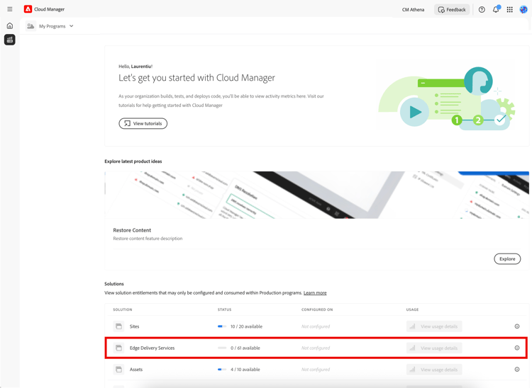 - No Cloud Manager program is configured for that Solution.