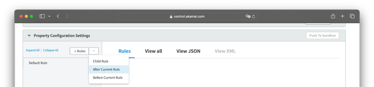 The following screenshots illustrate how to use the Akamai Property Manager to configure a property to deliver content from AEM using your Akamai CDN setup. Essential settings are marked with a red circle.