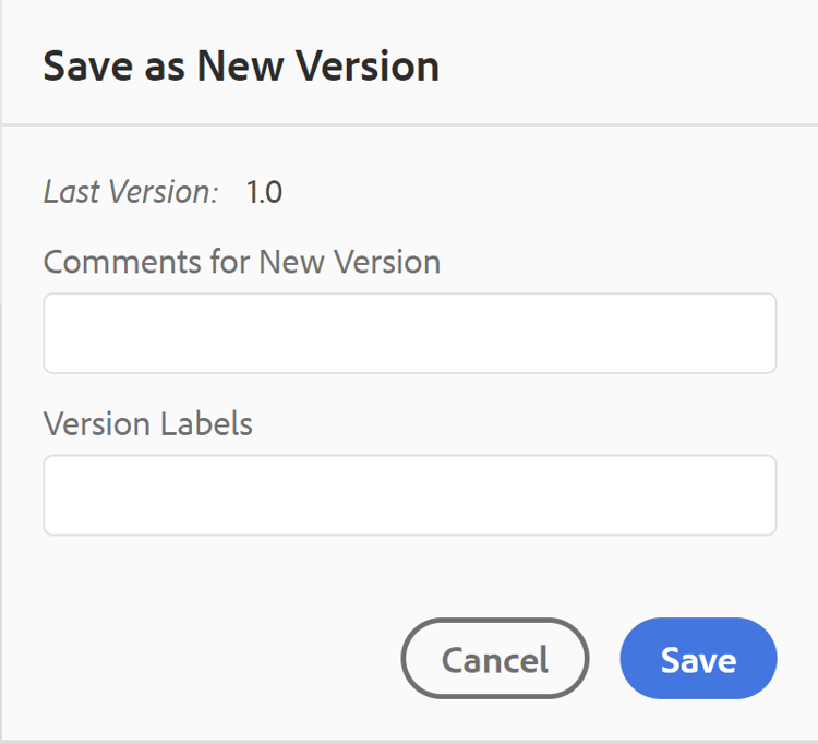 Enter comments and version labels to identify the changes and click Save to create a new version of your file.