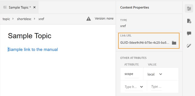 Metadata: You can control the version metadata of the topic and their values to be displayed in the Version History dialog box. In the metadata path, specify the location of the nodes from which you want to pick the metadata. You can also define a custom name for the metadata as the label. The default properties are Title, Document State, and Tags.