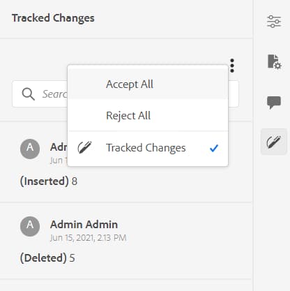 To access the feature, click the Tracked Changes icon in the right panel.