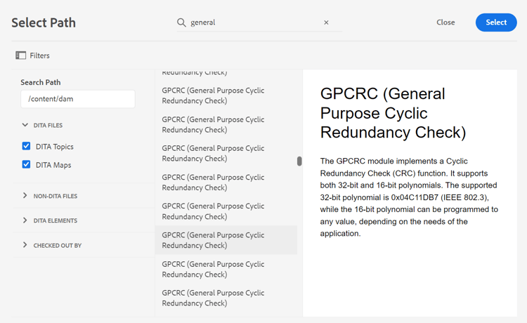 Apply filters to search for the files containing the text general purpose.