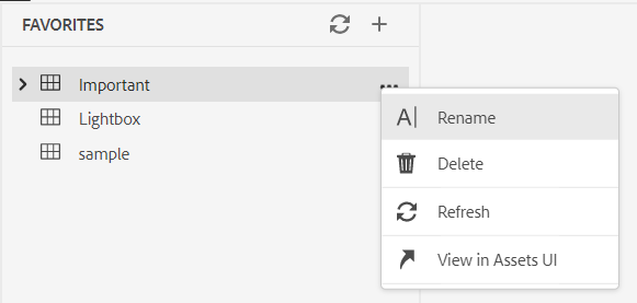 - View in Assets UI: Show the file or folder contents in the Assets UI.