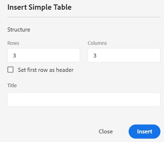 Spell Check: There are two options — AEM Spell Check and Browser Spell Check. By default, the editor uses the Browser Spell Check feature, wherein the spell-check is performed using the browser’s in-build dictionary. You can switch to AEM Spell Check to use AEM’s dictionary, which can also be customized to add your custom word list. For more information about customizing AEM dictionary, see Customize AEM’s default dictionary section in the Install and configure Adobe Experience Manager Guides as a Cloud Service.