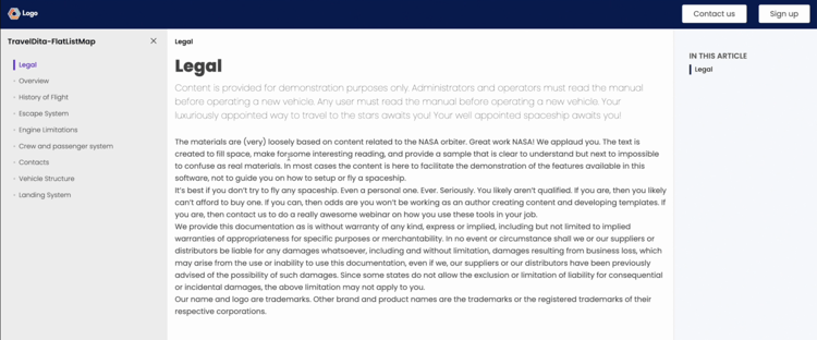 The EDS (Beta) output is now generated. The content is presented in a clean, responsive layout. It includes regular elements such as the page title, breadcrumbs, body content, and any blocks used in the topic. The TOC on the left (generated from the map) helps you to navigate across topics, while a mini-TOC on the right highlights the sections within the current page. The entire output is fully responsive, ensuring an optimized, consistent reading experience across devices.