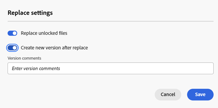 Replace unlocked files: Select this option to allow replace in the unlocked files.