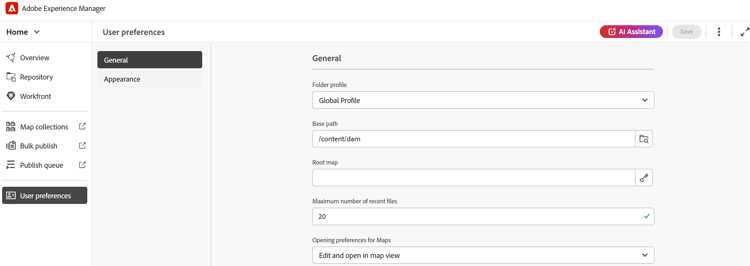 On-premise Software: If you are using Adobe Experience Manager Guides (4.2.1 and later), selecting the Assets option takes you to your current file path in the Assets UI.