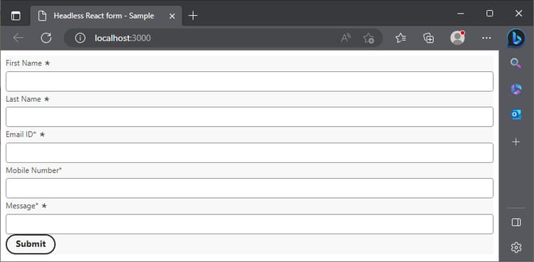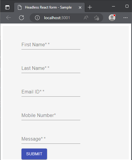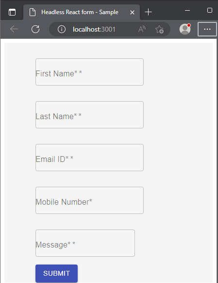 Refresh the browser tab with the headless form displayed. Notice, the Contact Number label has changed to Mobile number.