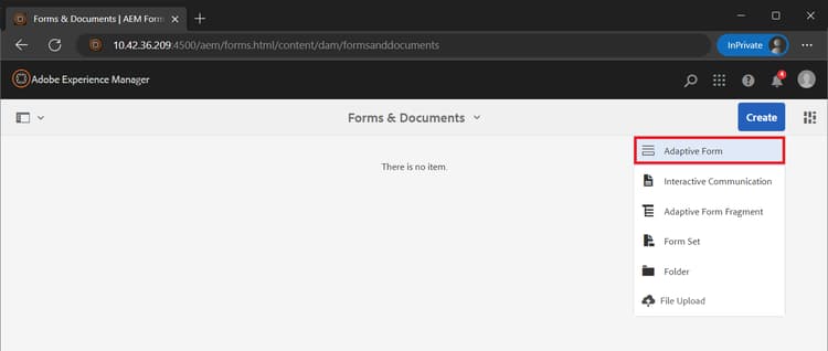Open AEM UI, navigate to Forms > Forms & Documents. Select the form created in the previous step and click