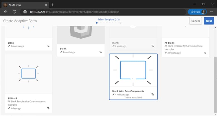 Select the Blank with Core Components template from the template selection screen as shown below and click Next.