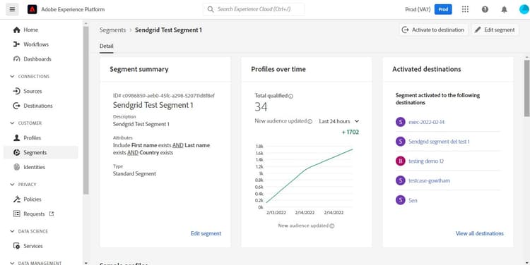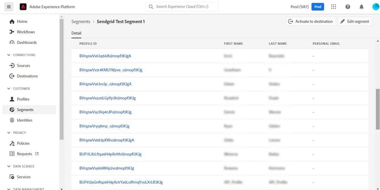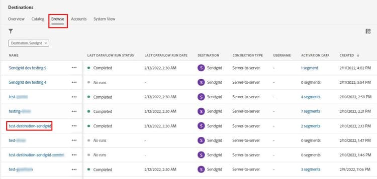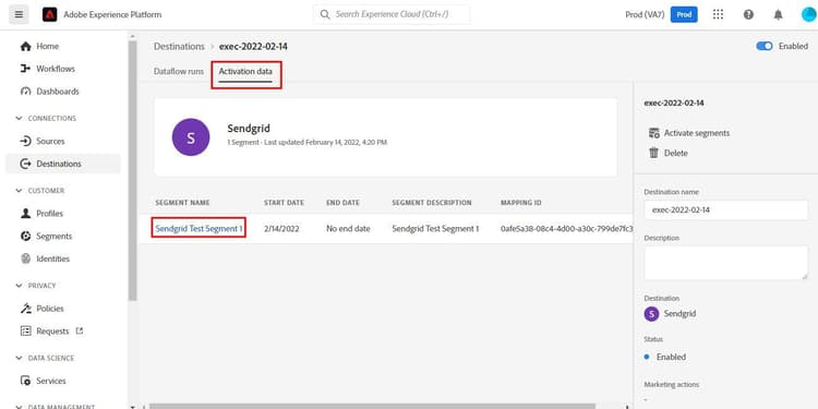Before activating data to the SendGrid destination, you must have a schema, a dataset, and segments created in Experience Platform. Refer also to the limits section further below on this page.