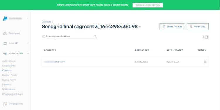 Select the newly created contact list and check if the new email record from the dataset you created is being populated within the new contact list.