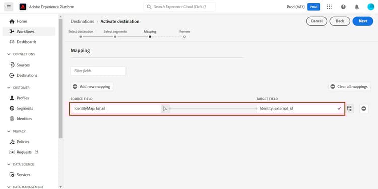 Similarly, map the desired Adobe Experience Platform attributes that you want to export to the SendGrid destination.