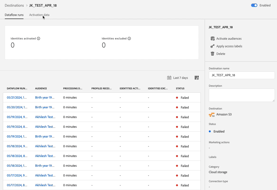 Destinations are pre-built integrations with destination platforms that allow for the seamless activation of data from Adobe Experience Platform. You can use destinations to activate your known and unknown data for cross-channel marketing campaigns, email campaigns, targeted advertising, and many other use cases.