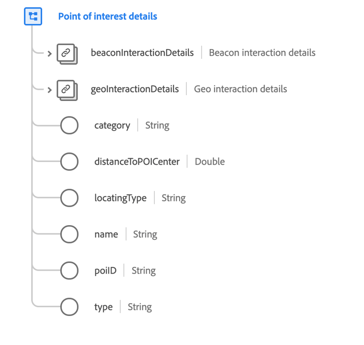 Point of interest details is a standard XDM data type that describes the geographic-related data where an event was observed.