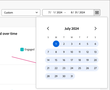 For the Custom range, you can use the calendar tool to specify a start and end date. The end date defaults to the current day.
