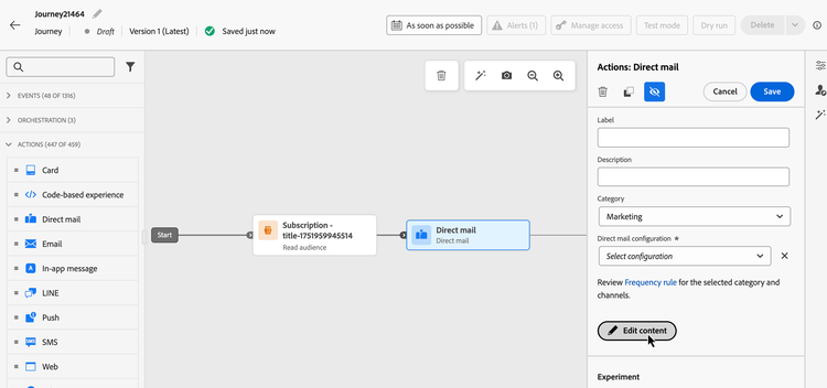 Once your direct mail configuration is ready, you can add a direct mail action into your journey.