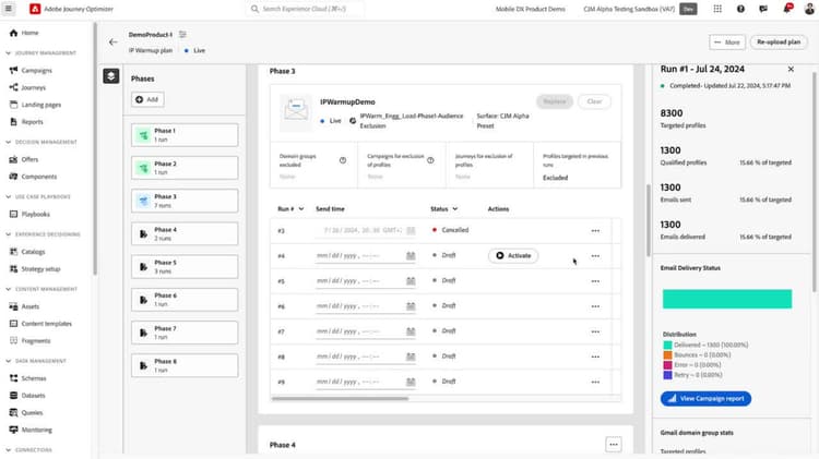 Create an IP warmup plan in Journey Optimizer and upload the Excel sheet prepared with the help of your deliverability consultant. Learn more