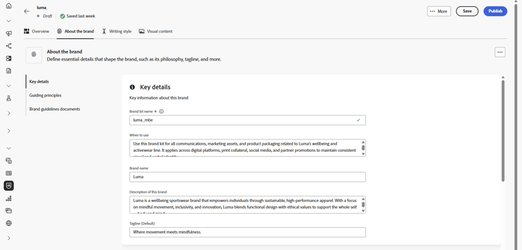 Once configured, click Save, then Publish to make your brand guideline available in AI Assistant.