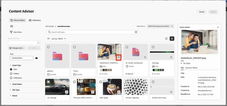 Work with Adobe Experience Manager content advisor aem-content-advisor