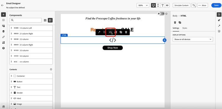 In Journey Optimizer, create a new campaign or open an existing one, then access the Email Designer.
