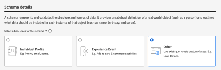 Schema type – Datasets must be associated with a schema that is NOT of Profile or Event type.