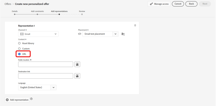 Configure the offer’s representations representations