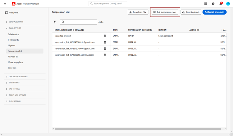 To ensure optimal deliverability and protect your reputation, start by delegating to Adobe the subdomains you are going to use to send your emails with Journey Optimizer. These subdomains will determine elements such as the web pages to be tracked and the mirror page URLs. Learn more