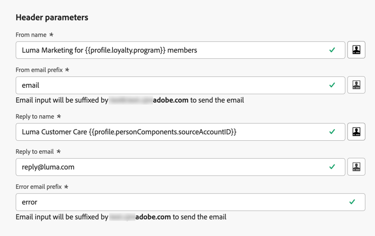 - The Sender email and Error email addresses must use the current selected delegated subdomain. Learn more
