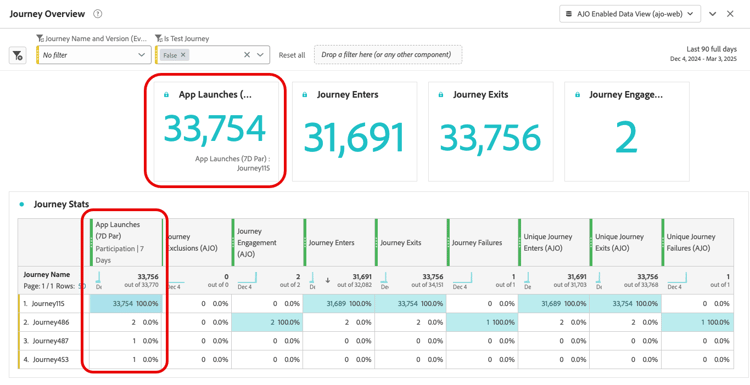 Your chosen metrics are displayed in the report’s KPIs and Journey Stats table.