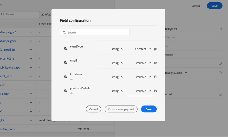 Design your template. In this example, personalization is applied to the profile’s first name and the order number. The first name is in the Adobe Experience Platform data source, and the order number is a field from the Journey Optimizer event. Ensure you use the correct field names in Campaign.