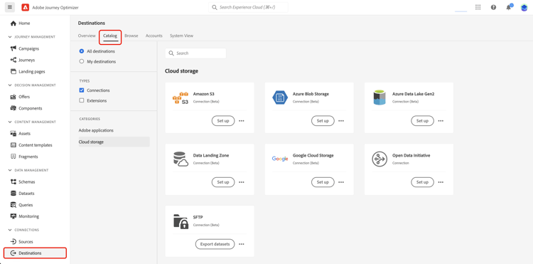 Caution - This feature is currently in beta and available to all Adobe Journey Optimizer users. Please work with your Adobe representative on getting access to Destinations if you do not already have access.