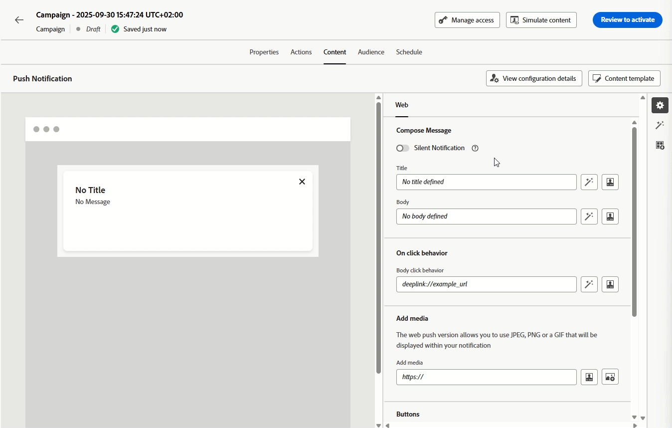 Adobe Journey Optimizer now supports Web push notifications, expanding the push channel beyond mobile. You can seamlessly deliver notifications to both mobile and desktop browsers, enabling you to reach customers directly on their devices without requiring an app. This enhancement allows you to engage users with timely, personalized messages in real time, leveraging the same authoring workflows and targeting capabilities already available for mobile push.