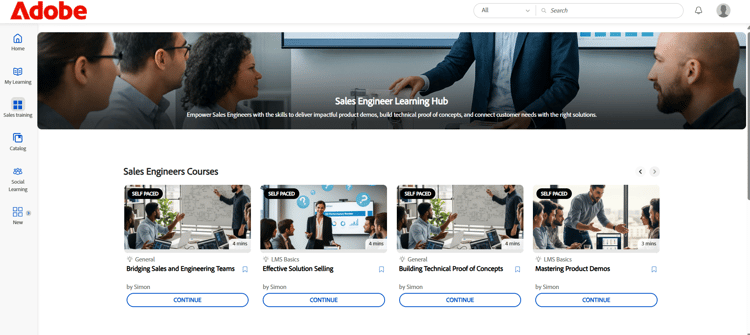 Sales Engineer learner page after customization
