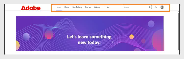 The Learner homepage menu design is based on the Adobe Learning Manager default design.