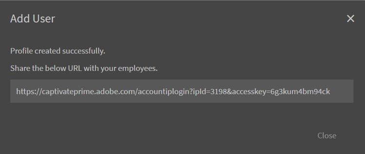 Share this URL with the employee to enable the employee to self-register as a learner.