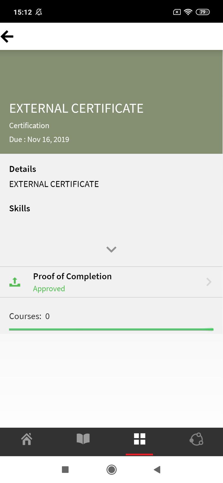 When the instructor approves the submission, the status on the Learner mobile app changes to Approved.