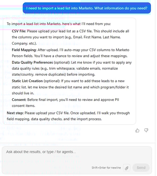 Import and deduplicate lead lists into your Marketo Engage database with field mapping assistance.
