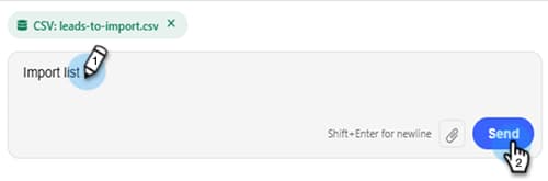 To start importing your leads, click the attachment icon and upload them via .CSV file.