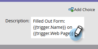In the Description box, write a message to your sales team. In this example we’re using tokens to specify the form that was filled out.