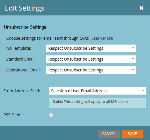 note caution CAUTION Respect Unsubscribe Settings: unsubscribed leads will NOT receive the email even if the published email is “operational” Ignore Unsubscribe Settings: unsubscribed leads WILL receive the email -