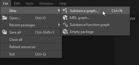 table 0-row-2 0-border-0px 1-border-0px 2-border-0px html-authored no-header On any existing package item in the Explorer, click RMB and go to New > Substance graph in the contextual menu. {modal="regular"}