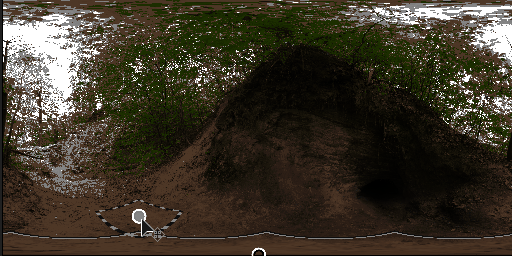 This node provides functionality to patch over the central ground point (nadir) of a spherically mapped image. It can be used to hide or “clone out” an ugly nadir, or visible camera or tripod. It works like a Clone Patch, but with adjustments for spherically mapped images. The user selects a point elsewhere in the image, that is the cloned and blended in at the nadir. No other external inputs are required other than a single HDRI to process, but an external mask can be used as alpha for the patch effect.