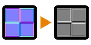 Performs a simple, harsh single-pass curvature conversion to input Normalmap. The resulting map has white tints for convex areas and black tints for concave. Curvature will always produce pixel-thin lines and sharp transitions.