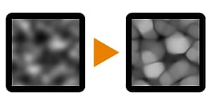 “Facetises” an existing, smooth, sloping gradient map by performing a multi-pass Warp effect. When the same map is used for both inputs, it essentially grows and accentuates the brightest areas.