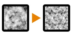Takes an input noise procedural and scales it up to double resolution, keeping detail but without introducing too much tiling. Uses an “X” type of mask and blends with contrast similar to the original input (internal blend mode is Copy).