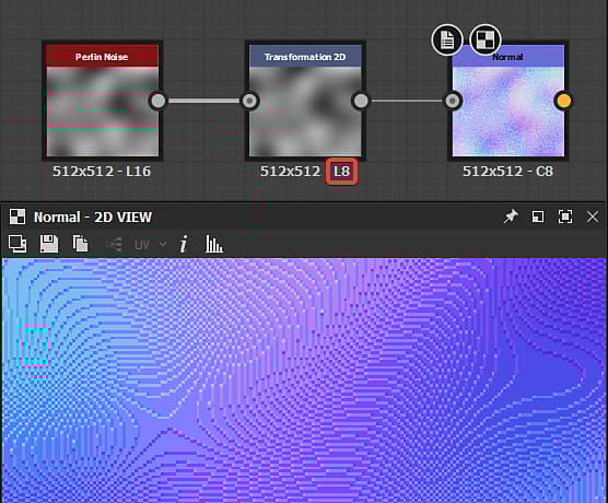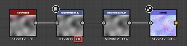Because the Transformation 2D node is atomic - thus very lightweight - it may be used even if no transformations are needed to change a texture resolution using its Output size property before sending the texture to another node, so you can control the impact of this resizing.